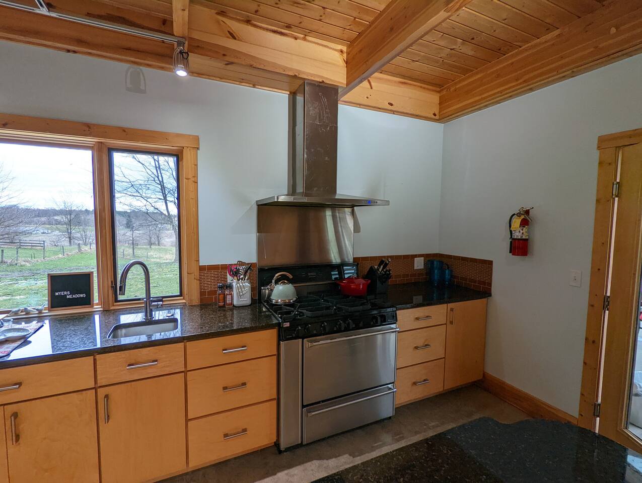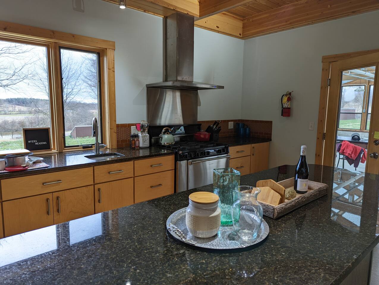 As you enter through the gate and drive up the picturesque apple and oak tree-lined driveway, our friendly barn cats and Ginny hens (who keep their distance) will be there to greet you. The guest house welcomes you with an inviting covered porch and a convenient private parking space right in front. Step inside and discover a cozy and modern living room adorned with comfortable furniture, a dining table, and a wall-mounted Roku big-screen TV, providing the perfect space to unwind after a day of exploring the outdoors. The gourmet kitchen is a delight, featuring elegant granite countertops, a commercial-grade range, a fridge, a high island, multiple prep sinks, and breathtaking views that make cleanup a breeze. The downstairs bathroom offers a touch of luxury with a spacious walk-in shower and a wall of glass block windows that flood the room with natural light. Upstairs, you'll find two bedrooms with queen beds, adorned with fantastic picture windows that offer scenic views. One of the bedrooms also includes a dedicated guest workspace and a cozy sitting area, where you can savor the tranquility of a quiet morning with a cup of coffee and a good book. Please note that the bedrooms are private but have a passthrough at the ceiling, so they are not completely soundproof. The property itself is a haven of beauty, featuring various fruit trees, bushes, and flowers that you are welcome to explore and enjoy. We've also created an outdoor hangout space with a fire pit, perfect for basking in the sunshine during the day or marveling at the stunning night skies that Ohio has to offer. Additionally, there is a gas grill and an outdoor dining area for your convenience. We love pets and have dedicated a large fenced-in meadow for your furry friends to frolic and play during their stay. However, please keep your pets on a leash while exploring the rest of the homestead due to other animals on the property. Please note that we charge a nightly per pet fee of $30. Conveniently located, our guest house provides easy access to Athens and OU, both just 15 minutes away. You'll also find an array of hiking options nearby, including Strouds Run State Park, Zaleski State Forest, and Lake Hope, all within a 20-30 minute drive. For a scenic adventure, take the lovely drive down Route 56 to Hocking Hills State Park, located just under an hour away. A short 5-minute drive down the road will lead you to the town of Albany, where you can find essential amenities and savor a cup of locally roasted coffee at Three Folds Roasters. Please note that while we moved into the main residence in July 2022, we may be working on the farm during your stay. Rest assured, we'll do our best to ensure that your stay is not disrupted. We're more than happy to chat with you about our work or offer recommendations for things to do in the area. However, if you prefer privacy, we'll respect your wishes with a simple hello. We eagerly await the opportunity to host you at Myers Meadows, where we're confident you'll fall in love with everything our guest house has to offer!