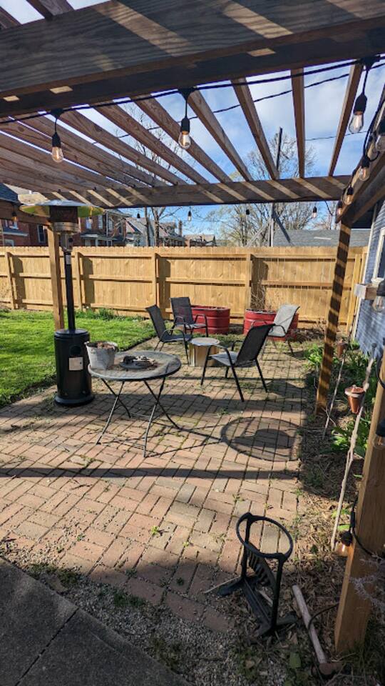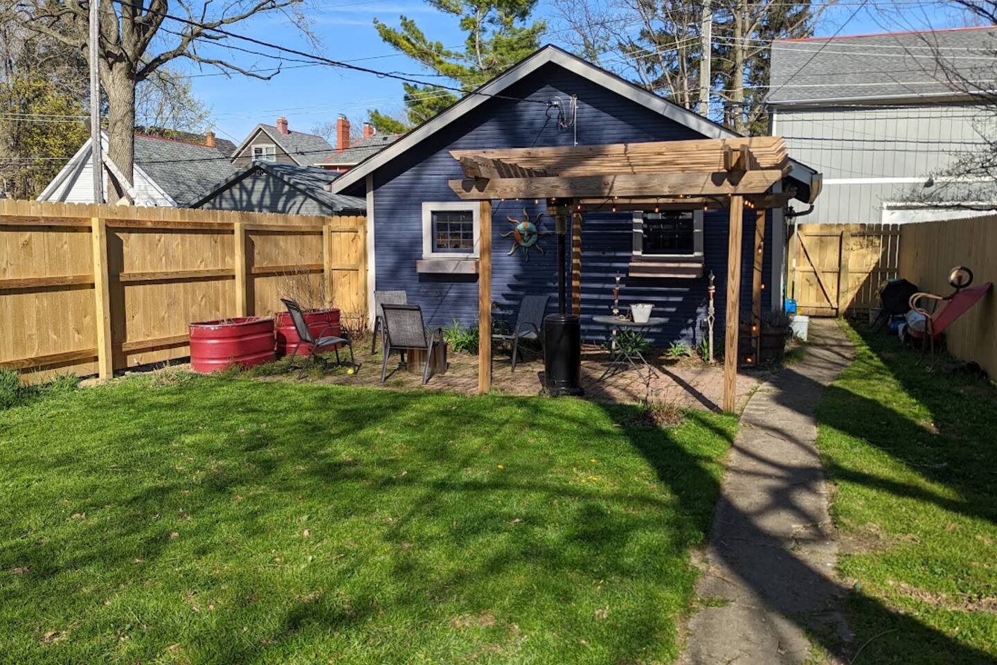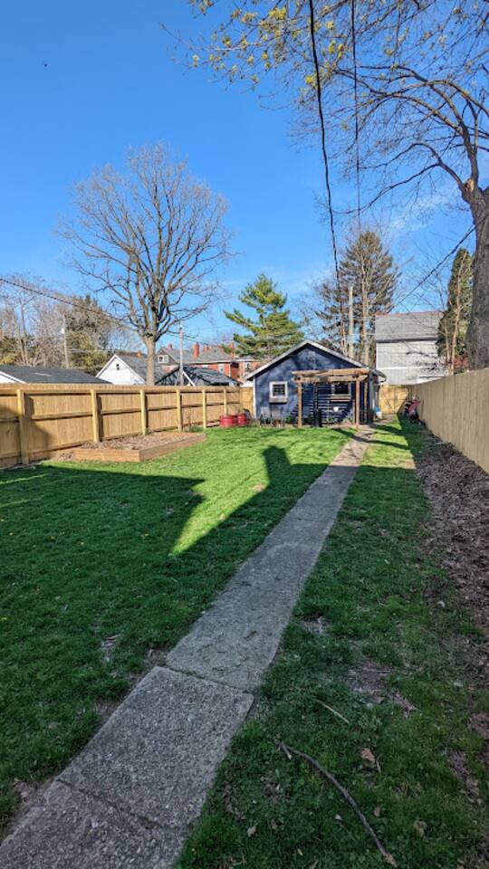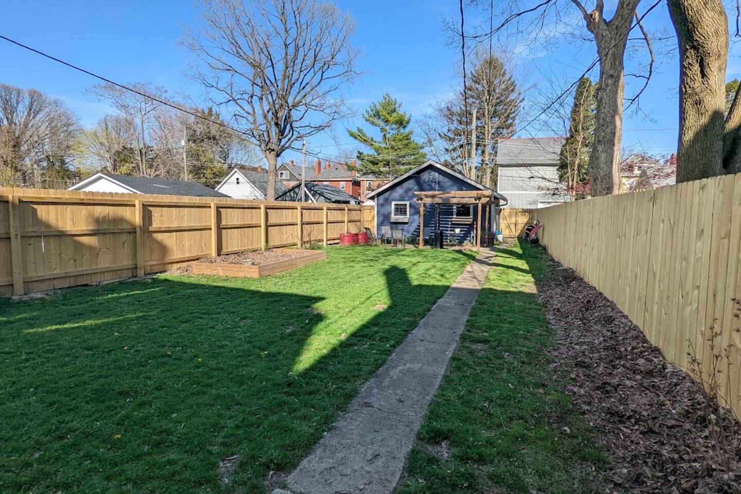 Situated just half a mile from Nationwide Children’s Hospital and with easy freeway access, our location offers convenient proximity to everything in the heart of Columbus. Downtown, the Arena District, OSU, German Village, the Brewery District, Bexley, Franklinton, Grandview, and more are just minutes away, ensuring you can explore the best the city has to offer. Parking is a breeze with our private garage space, suitable for a midsize sedan or SUV. Additional parking is available directly behind the garage, and the wide street provides ample free street parking, so finding a spot is typically hassle-free. Step inside our restored home, where modern living meets old-world charm. The cozy ambiance is enhanced by thoughtful touches, from the trim to the lighting, preserving the home's original character. The backyard is transformed into a true oasis, perfect for relaxation. The main level features a gourmet kitchen with a spacious peninsula countertop and bar seating. Whether you're whipping up a quick meal or indulging in culinary adventures, the well-appointed kitchen provides all the conveniences you need. The open-concept design seamlessly connects the kitchen to the generous dining room and living space, complete with a large flat-screen TV featuring streaming cable for your entertainment. Off the kitchen, you'll find a convenient back entryway with a delightful mudroom, equipped with a bench and plenty of hooks for storing belongings. A half bath on this level ensures convenience without the need to go upstairs. As you ascend the grand staircase, you'll discover two spacious bedrooms with comfortable queen beds. The primary bedroom features walk-in closets, offering ample space for longer stays. The bathroom will transport you to a spa-like experience, with its original clawfoot tub for a relaxing soak and an open-air shower adorned with natural light. Additional amenities on the upper level include a washer/dryer all-in-one unit for easy laundry care. For larger loads or bulkier items, a full-size washer and dryer are available in the basement. For those who need to work during their stay, we provide a dedicated office space furnished with a convertible stand-up desk, chair, and basic office supplies. Stepping into the backyard, you'll discover a lovely, spacious fenced yard adorned with beautiful flowers. The brick patio, complete with a pergola, outdoor dining area, and fire pit, is perfect for enjoying outdoor relaxation. Your furry friends will love the pet-friendly environment as well.